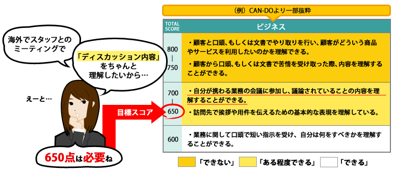 「CAN-DO」レポートには取得スコアでできる事と、できない事が具体的に記述されているので目標設定に役立ち、学習のモチベーションもUP!